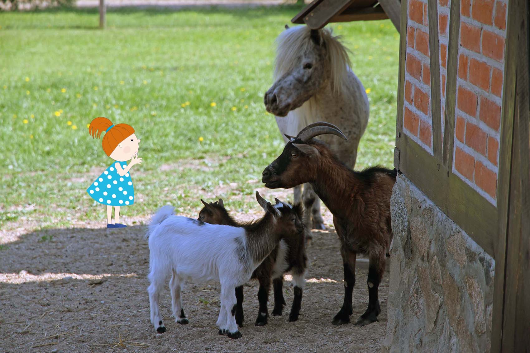 To była mała Franka. Po chwili zza budynku wyszła reszta koziej rodzinki.